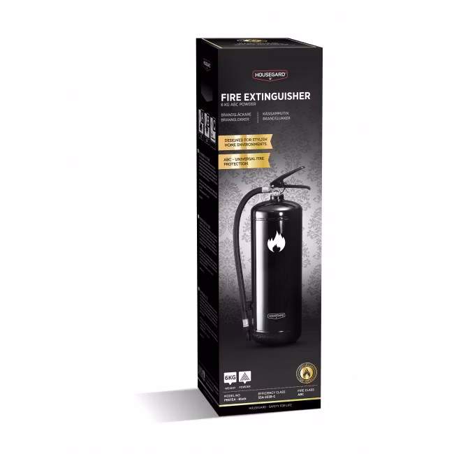 För de som vågar kontraster finns våra svarta brandsläckare, avskalade och perfekta för det svartvita, grafiska hemmet. Den svarta färgen är bra då den står ut och blir synlig, men inte på samma sätt som den röda. Brandsläckarna i serien Design by Housegard är avsedda för hemmamiljöer, där användaren kan förväntas veta var släckaren är placerad.